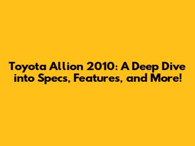 Toyota Allion 2010: Specs, Features & More!
