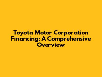 Toyota Motor Corporation Financing: A Comprehensive Overview