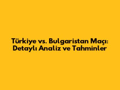 Özetle: Türkiye ve Bulgaristan arasındaki maçın, futbolseverlere heyecan dolu anlar yaşatması bekleniyor. Türkiye'nin hücum gücü ve Bulgaristan'ın savunma direnci, maçın skorunu etkileyebilecek önemli faktörler. Türkiye'nin galibiyete daha yakın olduğu tahmin ediliyor. Ancak, futbolun sürprizlere açık olduğu unutulmamalı. Maçı izlerken, futbolun birleştirici gücünü ve sporun coşkusunu yaşayalım.