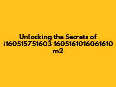 It's important to be persistent and patient, because decoding something like this can take time. But if you gather enough data, use the right tools, and keep an open mind, you should eventually discover what i160515751603 1605161016061610 m2 means.