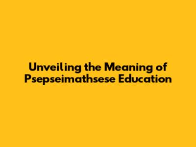 Unveiling The Meaning Of Psepseimathsese Education