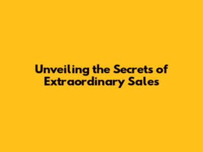 Unveiling The Secrets Of Extraordinary Sales