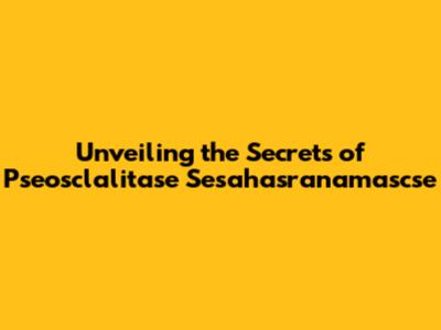 Unveiling The Secrets Of Pseosclalitase Sesahasranamascse